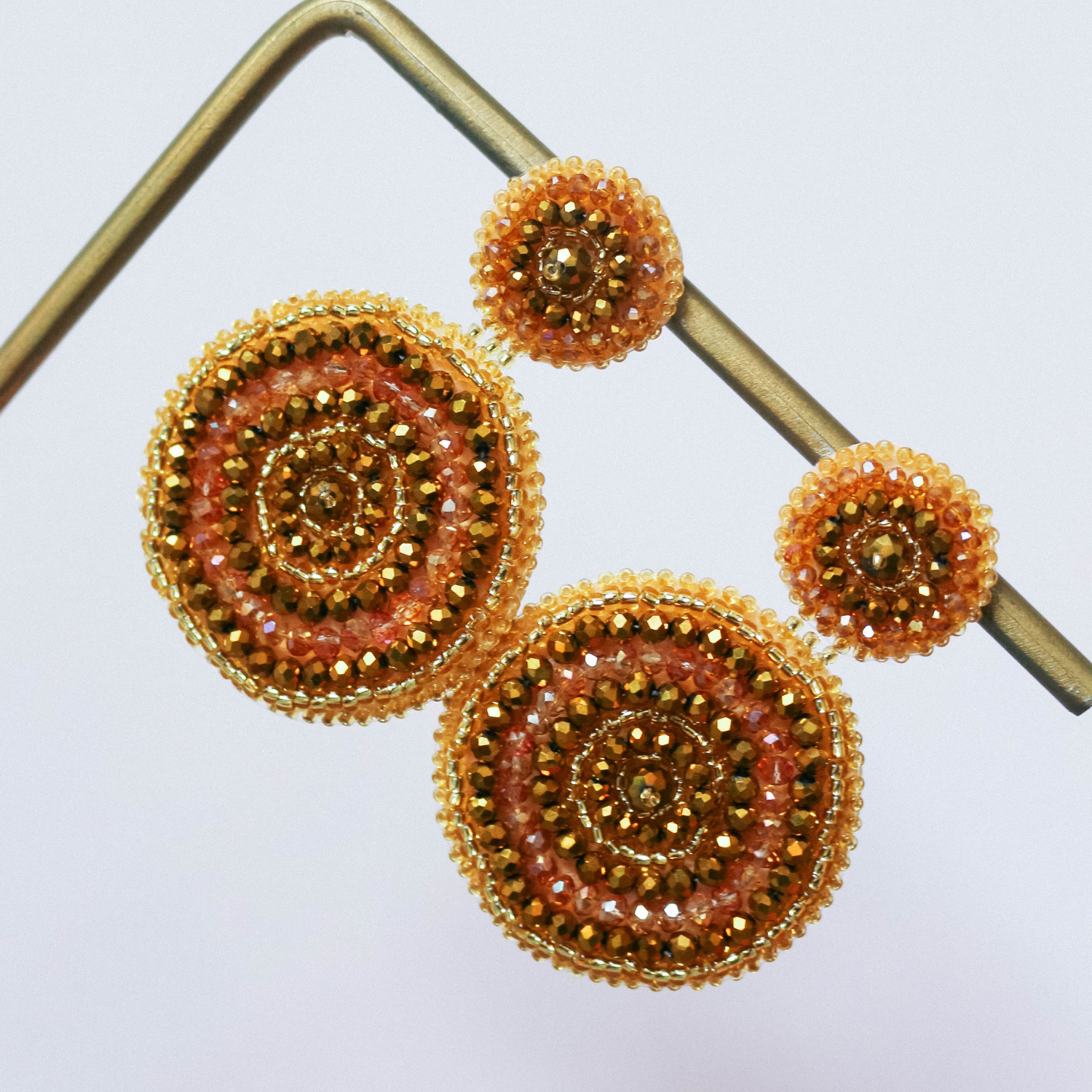 Los pendientes Mandala son especiales por su bordado a mano y por la tonalidad de colores tierra y dorado.